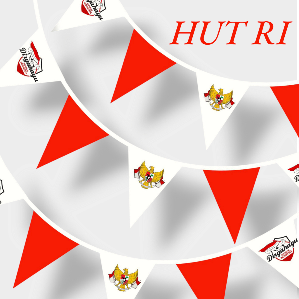 Bendera Merah Putih HUT RI 17 Agustus Dirgahayu Indonesia logo Bunting Flag model Segitiga Panjang 5 meter