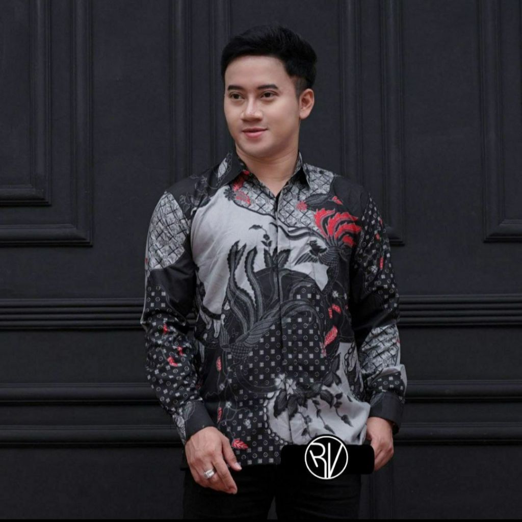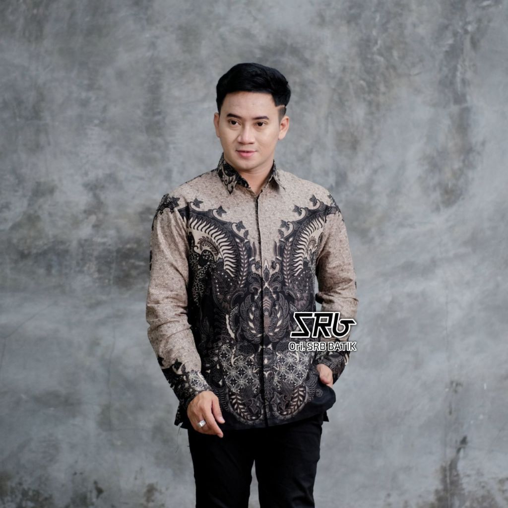 Baju Kemeja Batik Pria Lengan Panjang Size M L XL XXL BSWART Warna Biru Denim