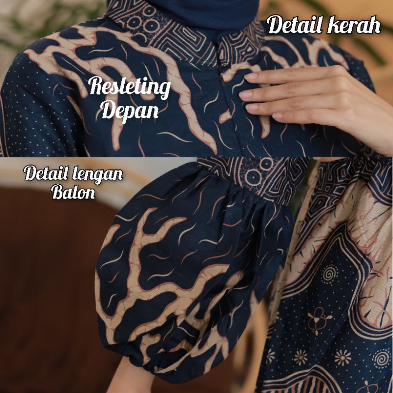 Batik wanita modern baju batik wanita lengan balon resleting depan by batik kahuripan