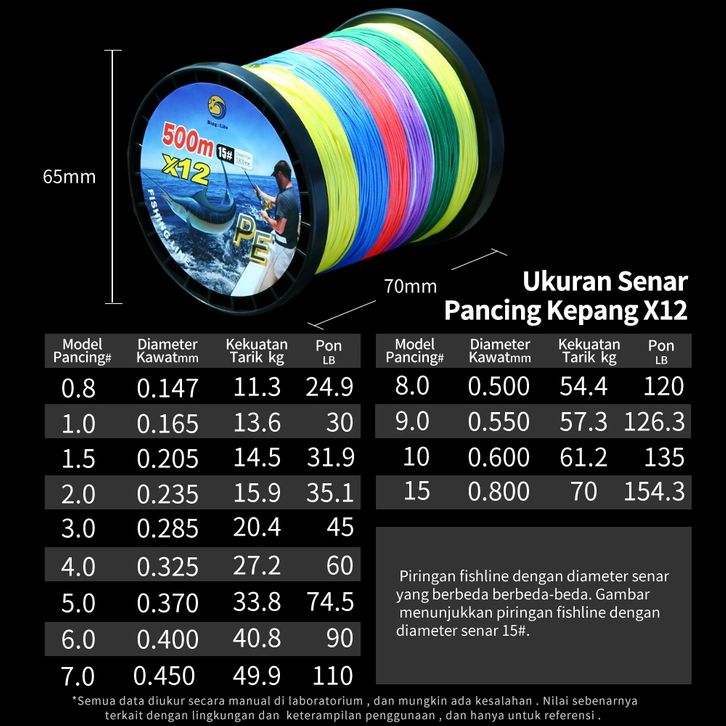 x12 0.8# 0.15mm 11kg, x12 1# 0.17mm 13.6kg, x12 1.5# 0.20mm 14kg, x12 10# 0.60mm 61kg, x12 15# 0.80mm 70kg, x12 2# 0.23mm 15.9kg, x12 3# 0.29mm 20.4kg, x12 4# 0.33mm 27.2kg, x12 5# 0.37mm 33.8kg, x12 6# 0.40mm 40.8kg, x12 7# 0.45mm 49.9kg, x12 8# 0.50mm 54.4kg, x12 9# 0.55mm 57.3kg, x16 10# 0.60mm 74kg, x16 12# 0.70mm 86kg, x16 15# 0.80mm 100kg, x16 20# 0.90mm 115kg, x16 25# 1.00mm 125kg, x16 3# 0.29mm 27kg, x16 30# 1.20mm 150kg, x16 4# 0.33mm 35kg, x16 5# 0.37mm 43kg, x16 6# 0.40mm 50kg, x16 7# 0.45mm 58kg, x16 8# 0.50mm 62kg, x16 9# 0.55mm 68kg
