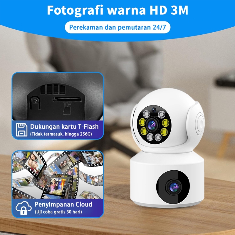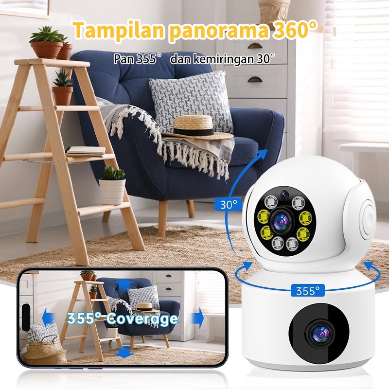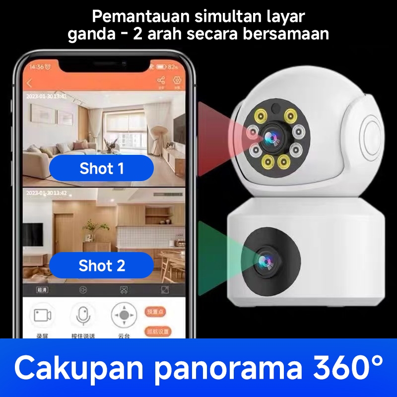 【Ready Stock】 Card Dual Lens CCTV Wireless Indoor HD Night Vision Two-Way Audio PTZ Camera