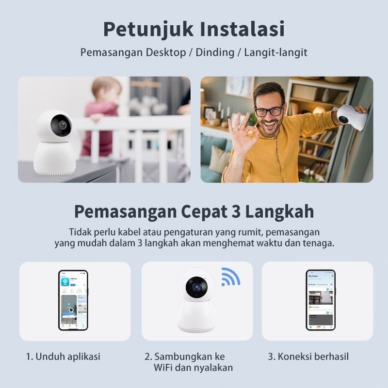 X-IOT CAM CCTV Indoor PTZ 360 Smart Home IP Camera Wifi Jarak Jauh Lewat HP 1080p Baby Monitor Tuya