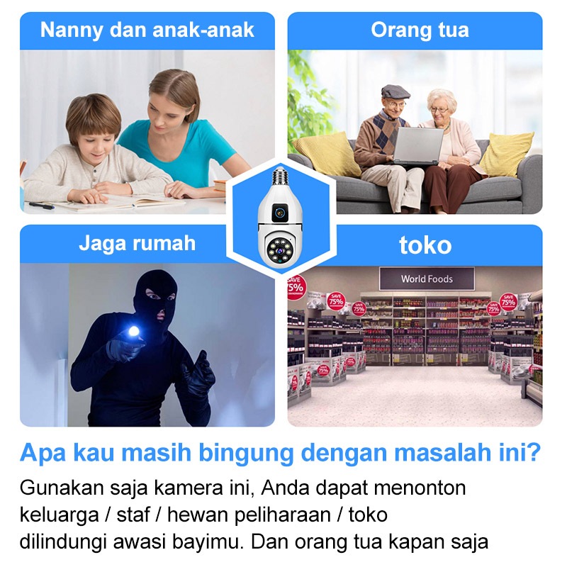 cctv v380 pro Bulb Dual Lens Kamera CCTV outdoor cctv wifi jarak jauh lewat hp Auto Tracking Night Vision Bidirecti