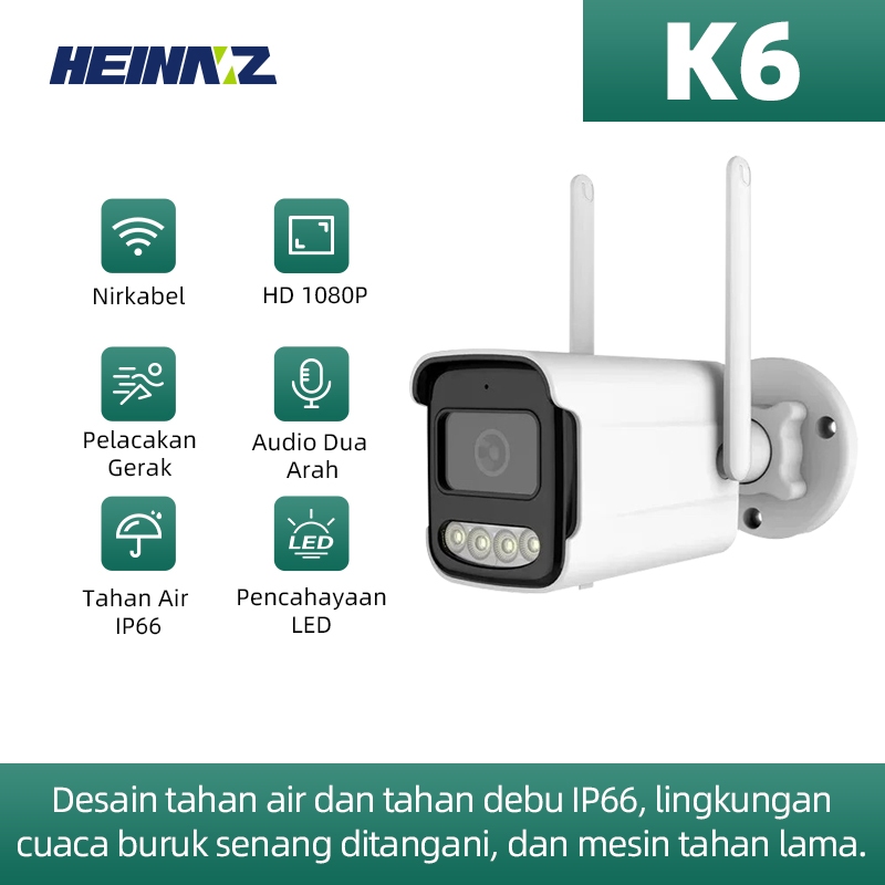 HEINVIZ K6 HD 1080P IP CCTV Camera Wifi Nirkabel/Kabel Kamera Outdoor Tahan Air CCTV Penglihatan Malam