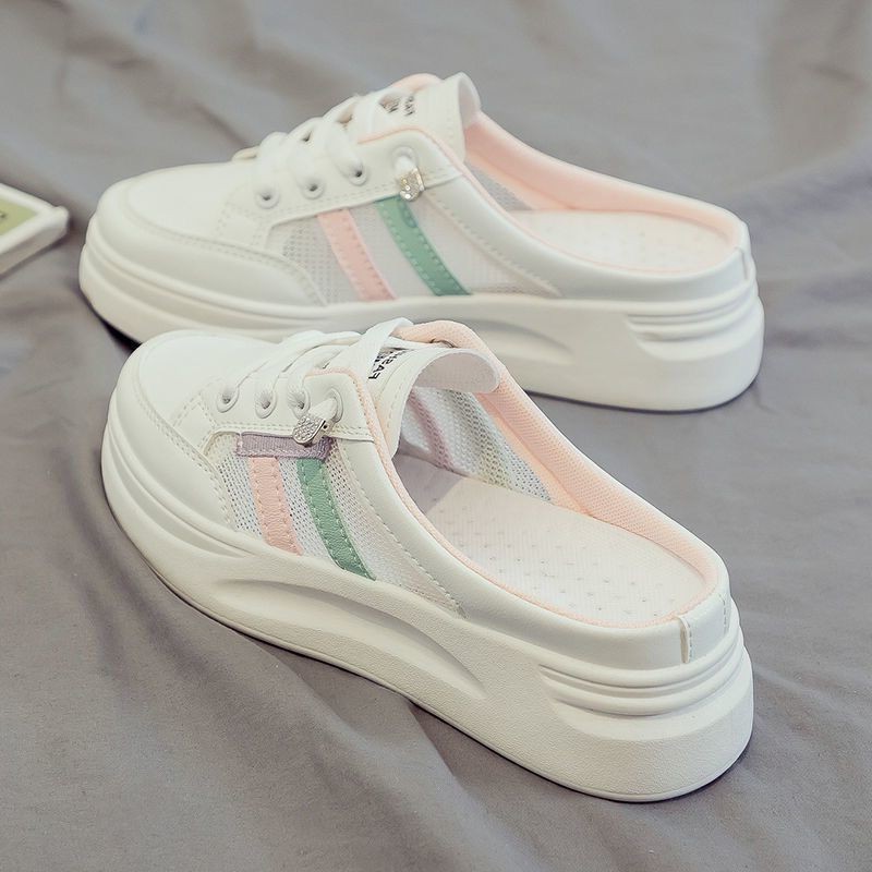Sepatu sandal wanita trendy slop slip on anti slip motif garis list NEW semua musim soes