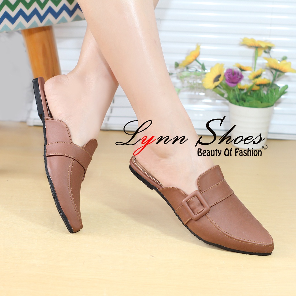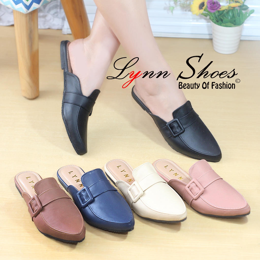 Lynn Sendal Selop Flat Wanita Exclusive S10U - Biru / Coklat / Cream / Hitam / Pink