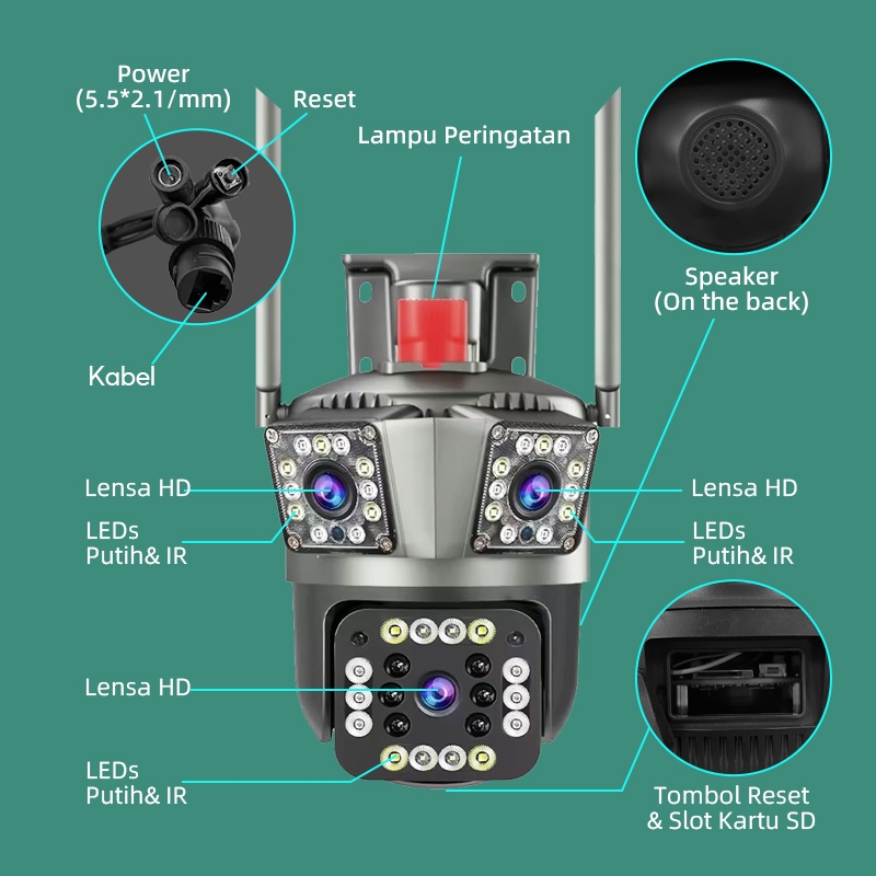 V380 H10 Tiga Lensa Outdoor Tanah Air CCTV Camera HD Wi-Fi Nirkabel/Berkabel Multi Penglihatan Malam Kamera keaman