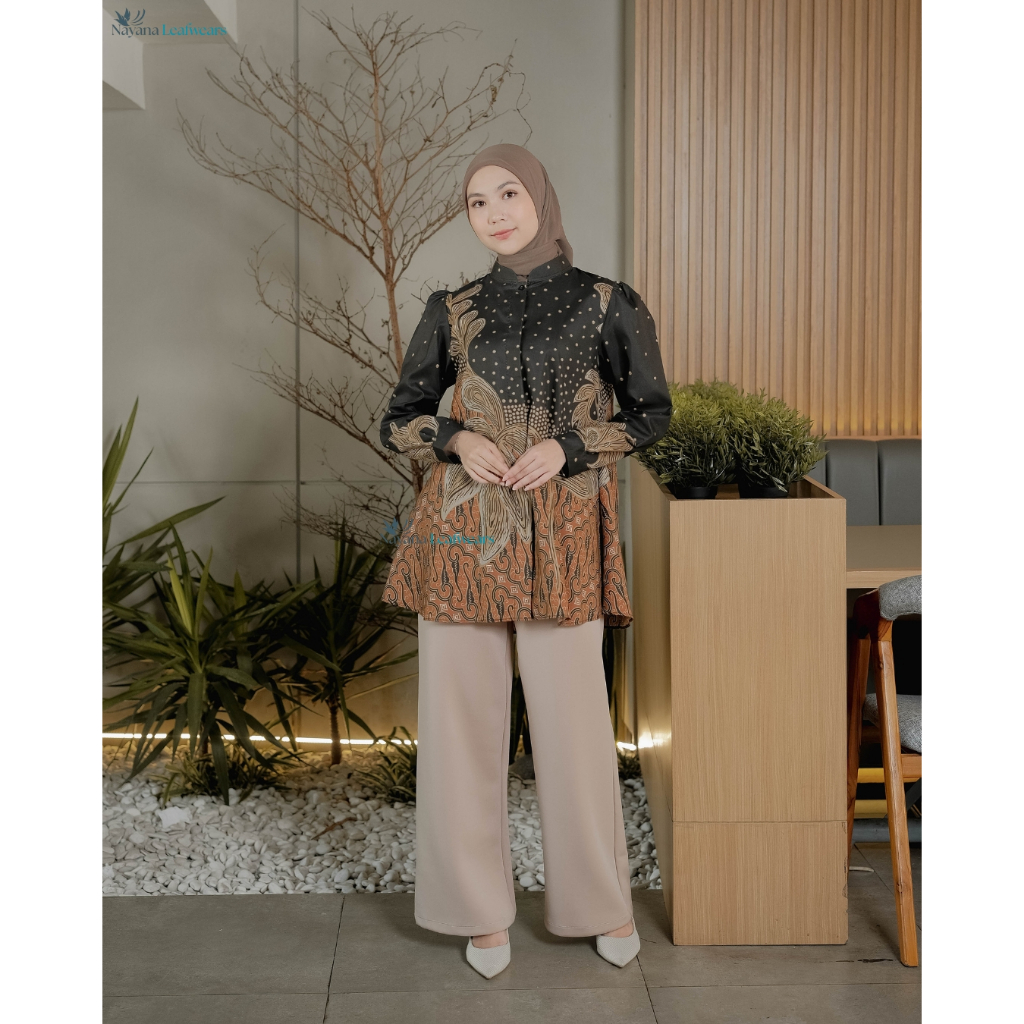 Atasan Batik Wanita Modern Lengan Panjang Puffy Blouse Batik Namara Baju Batik Kerja Modern