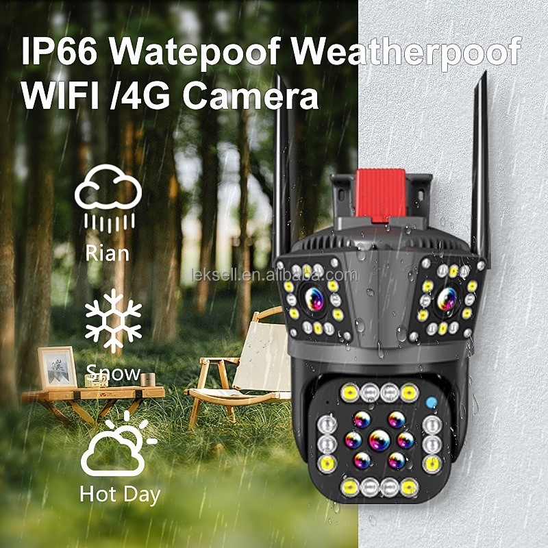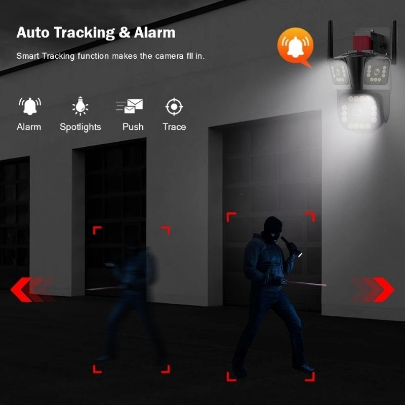 3 lensa-cctv V380 pro Outdoor WiFi / 4G SIM Kamera 8MP+8MP+8MP Waterproof IP Kamera 360° PTZ night vision Human bod