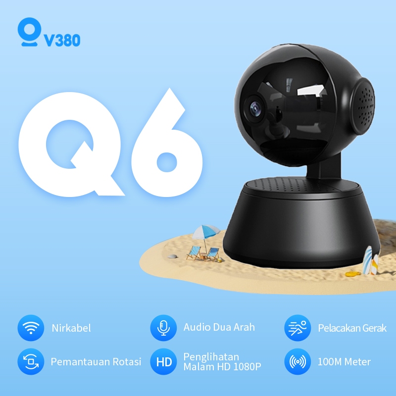 [Garansi 1 tahun]V380 Q6 BLACK Camera Keamanan Cerdas 360 Derajat HD Panorama 3D WiFi Penglihatan Malam Kamera IP C