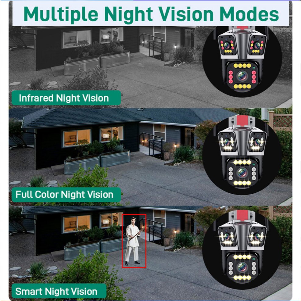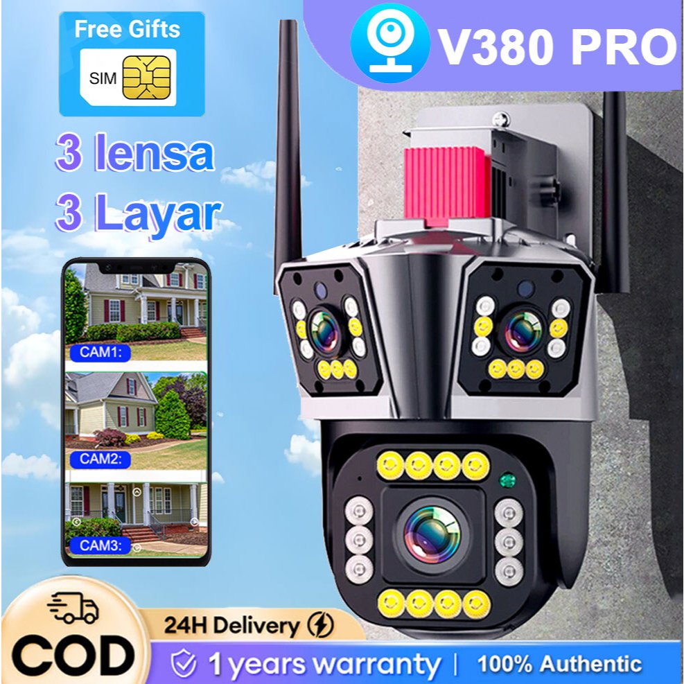 3 lensa-cctv V380 pro Outdoor WiFi / 4G SIM Kamera 8MP+8MP+8MP Waterproof IP Kamera 360° PTZ night vision Human bod