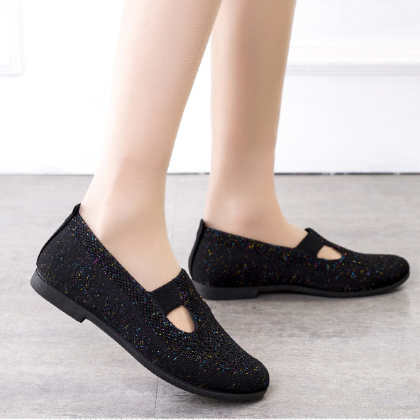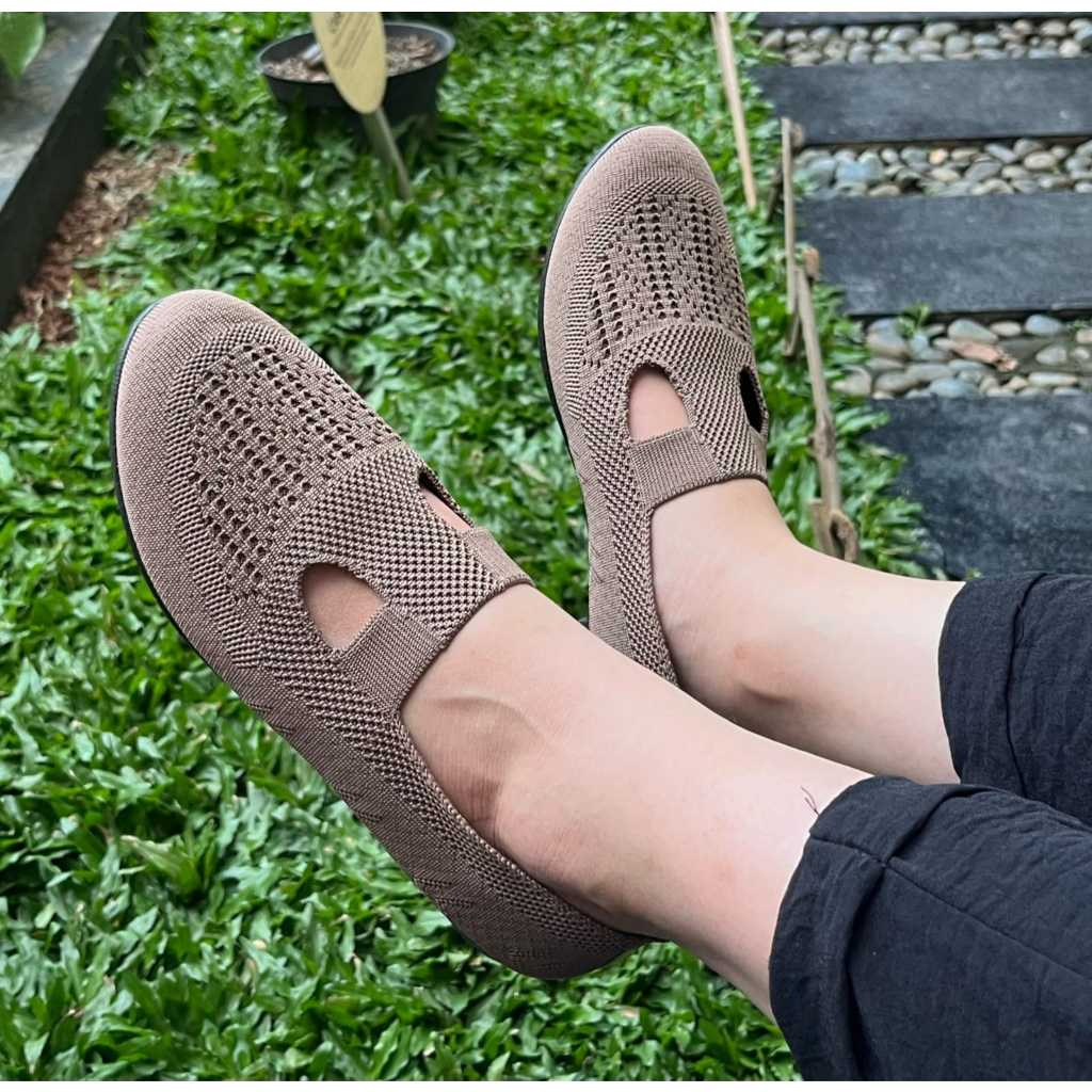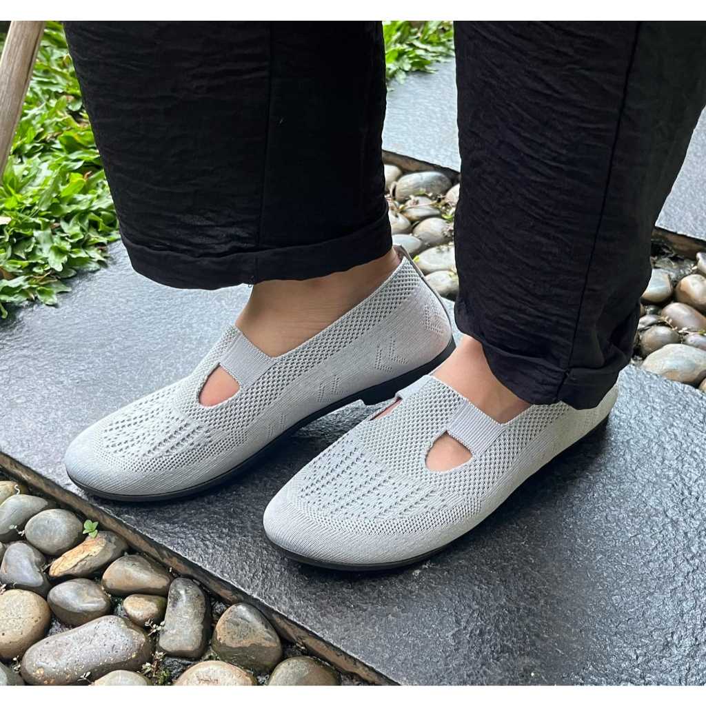 sepatu wanita flat shoes sepatu flat sol karet hitam anti licin + kotak 110