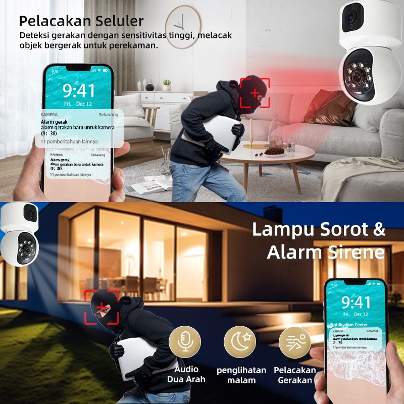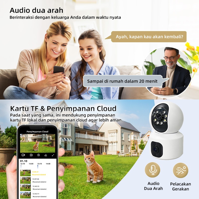 Franwell CCTV Camera 4MP HD Wi-Fi Multi Penglihatan Malam Lensa Ganda Kamera keamanan Pelayaran PTZ