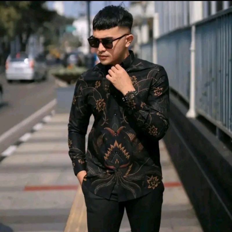 NEW ARRIVAL DISTRO KEMEJA BAJU BATIK PRIA LENGAN PANJANG PRIA COWO COWOK BORDIR SOGAN HRB026 MODERN
