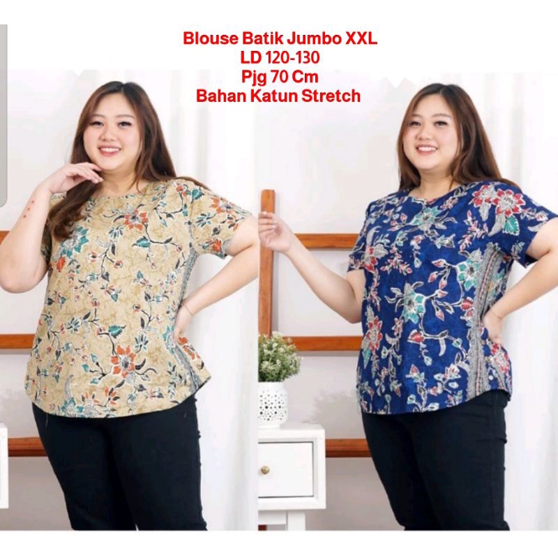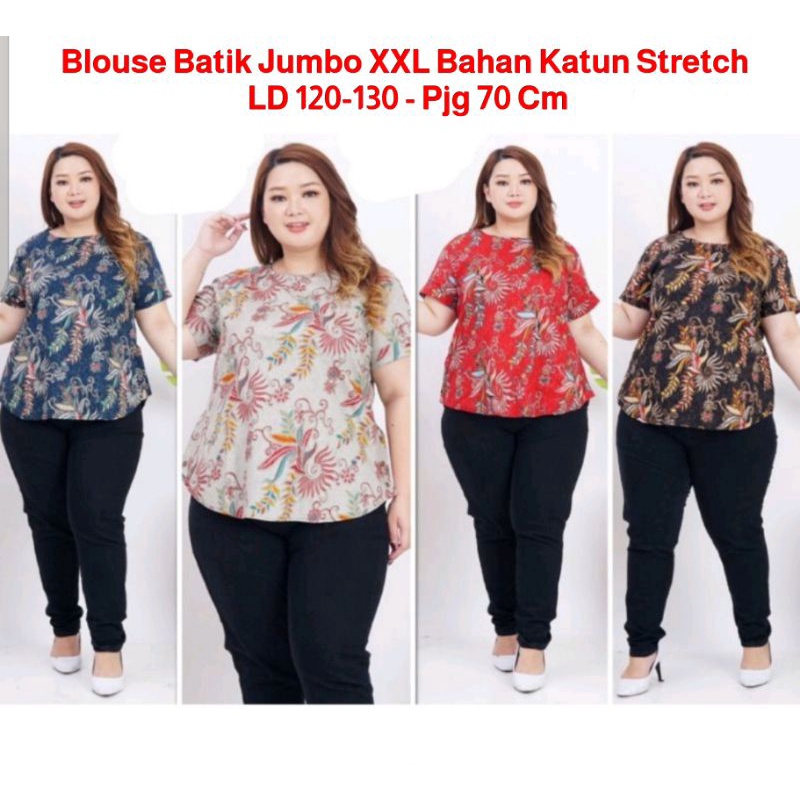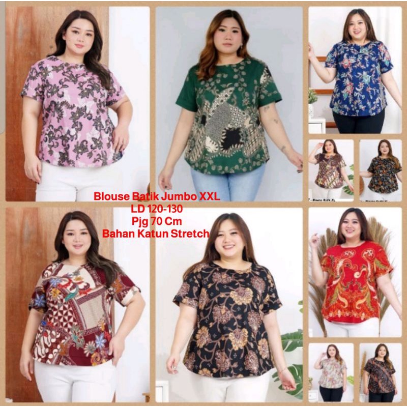 Baju Blouse Batik Jumbo XXL/Batik Atasan Wanita Katun Stretch Big Size