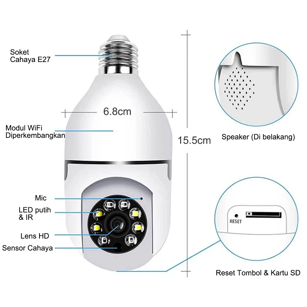ALLGER CCTV V380 pro IP Lensa Ganda 5MP PTZ Pengawasan 360°Kamera Suara Panorama Voice 1080P HD PTZ Cam Video Recor