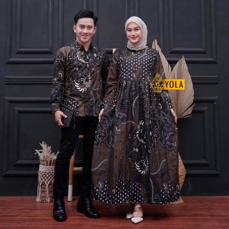 Batik couple - baju batik keluarga moderen gamis wanita kemeja lengan panjang terlaris