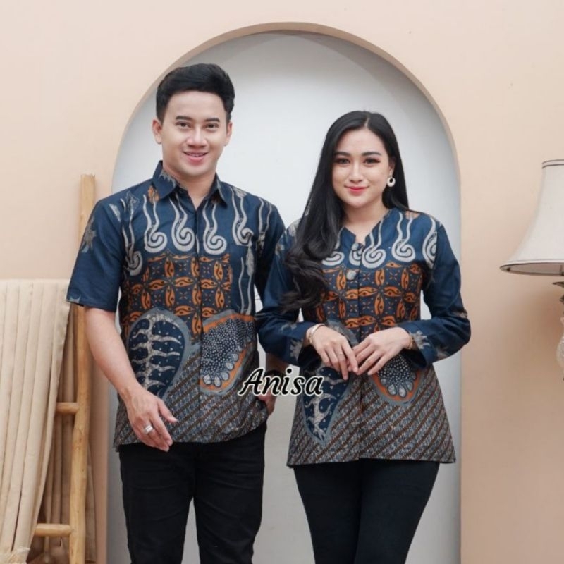 Maura Couple Batik Couple Sania Ruflle ORI Ndoro Jawi Baju Batik Wanita Modern Atasan Blouse Batik
