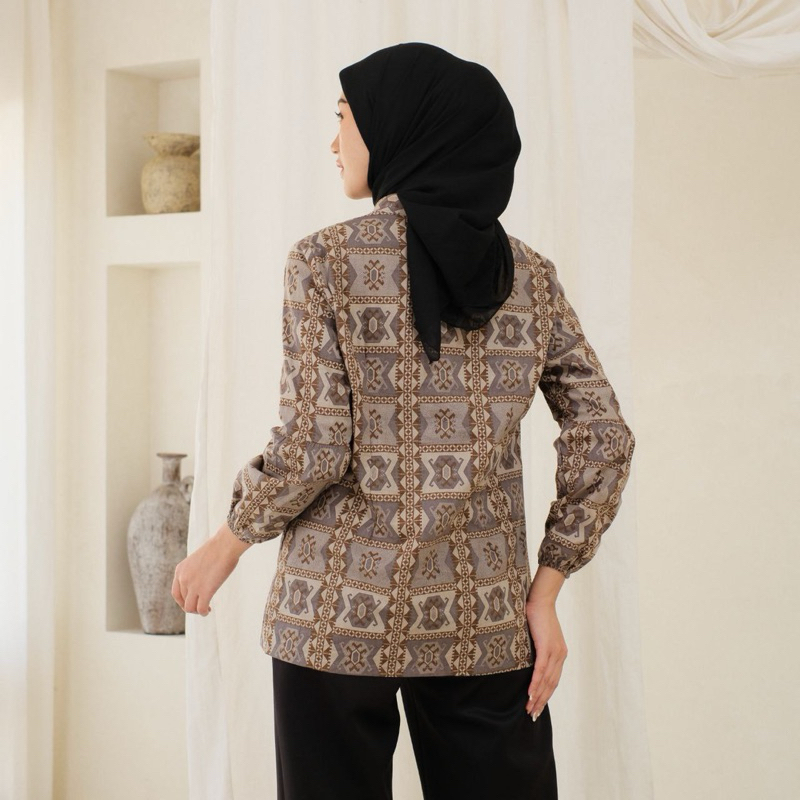 Tey-17 Batik Wanita ASJ SA HRB026 Kenongo Kemeja Tosca Pendek