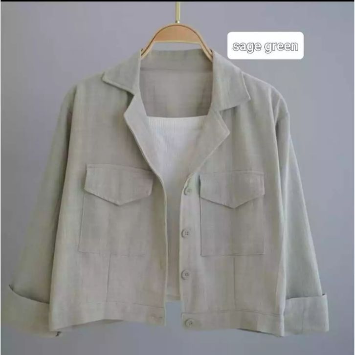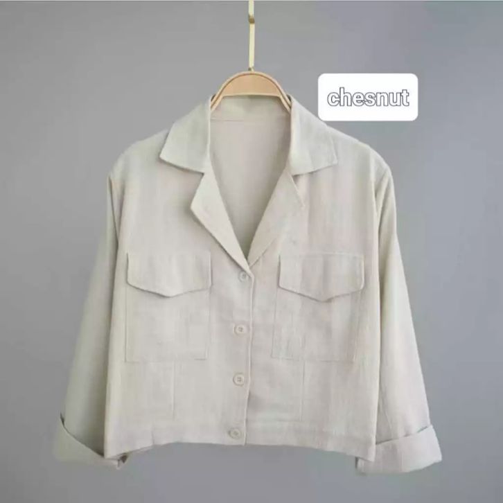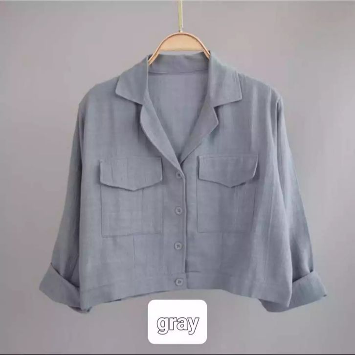 DAISY STUFF Blouse Wanita Crop Top Linen Korean Style 2 Pocket