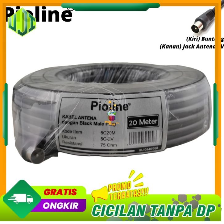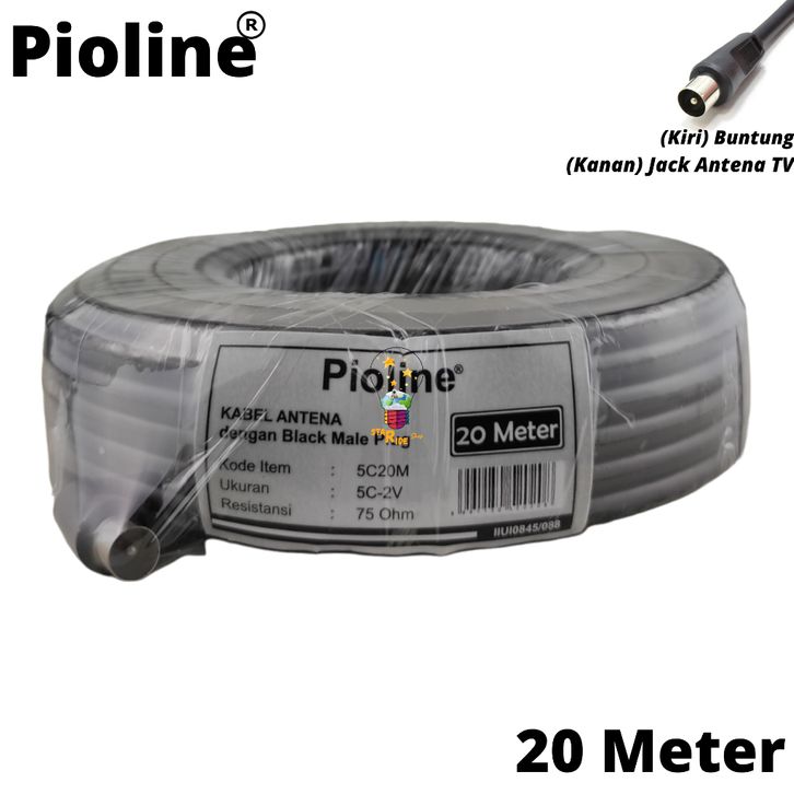 Pioline Paket Kabel Antena TV Digital Televisi Antenna Coaxial Cable RG6 5C 2V 75 Ohm Jadi 20 Meter Dengan Konektor Colo