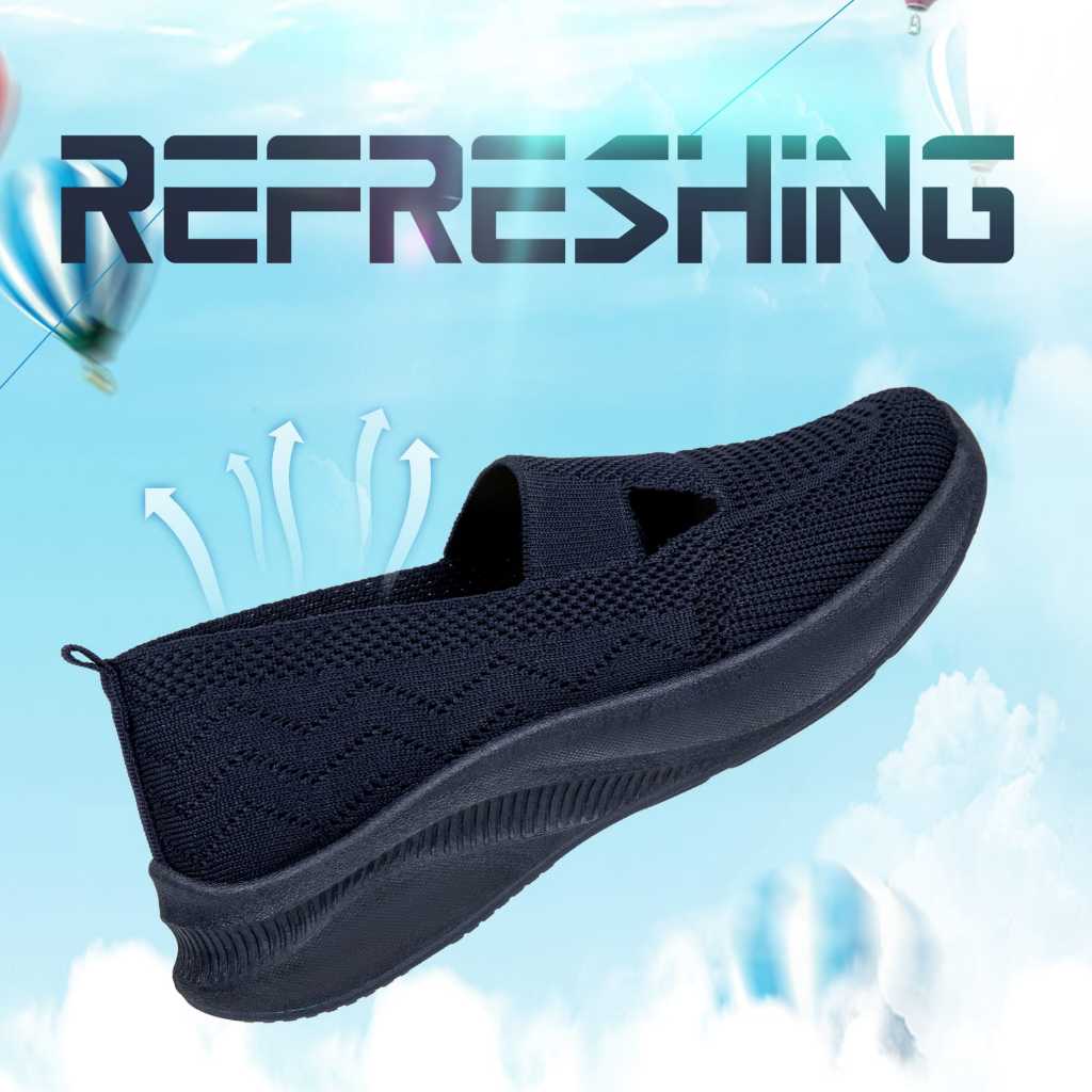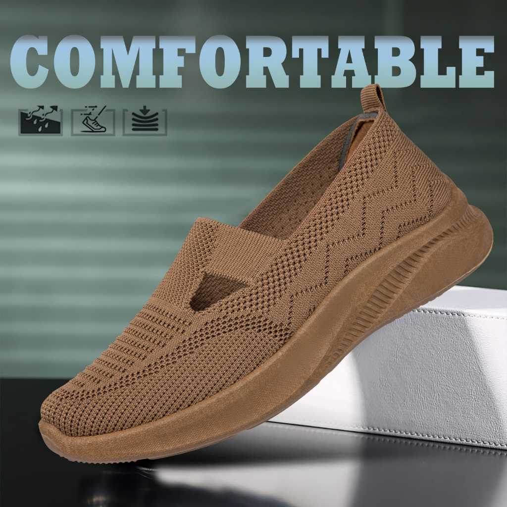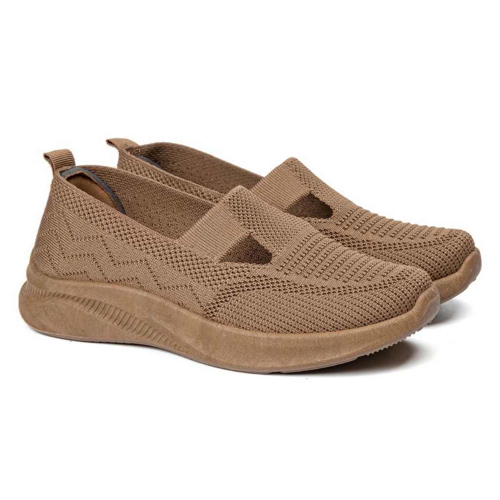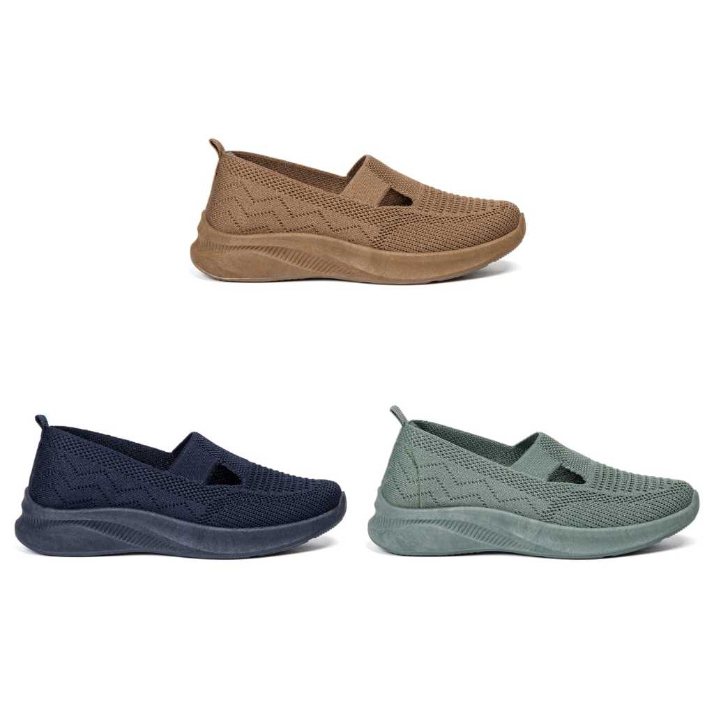 Sepatu Slip On Sepatu Rajut Wanita Fashion Impor Nyaman Ringan Model Flatshoes 2 Garis V Full Warna L6111-W