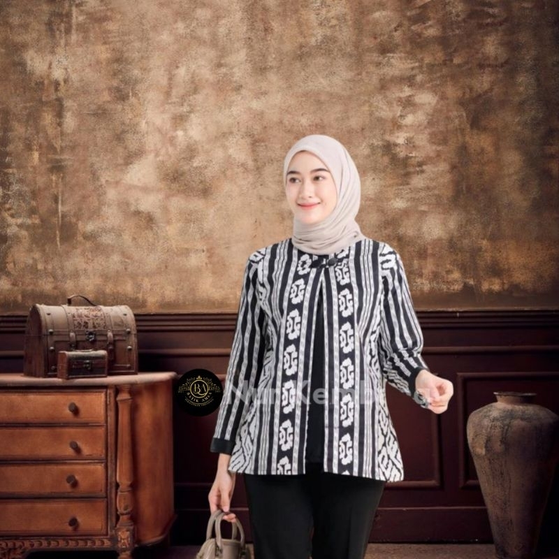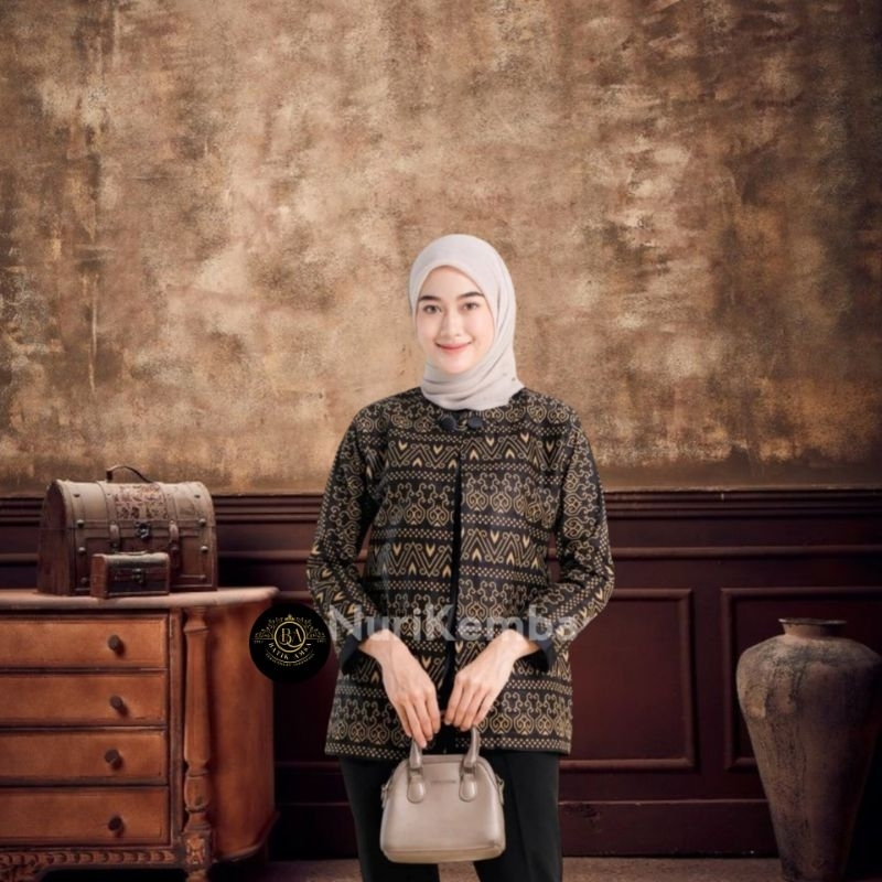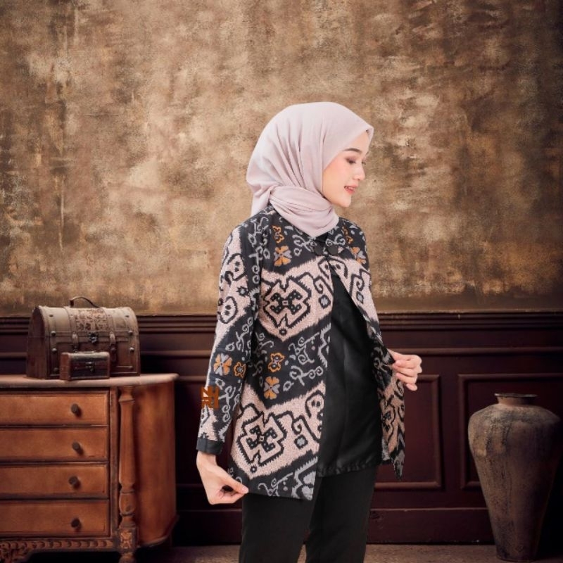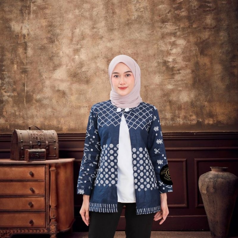 Blouse Batik Bolero Kerja Wanita Sudah inner Motif Kekinian Lengan Panjang Modern