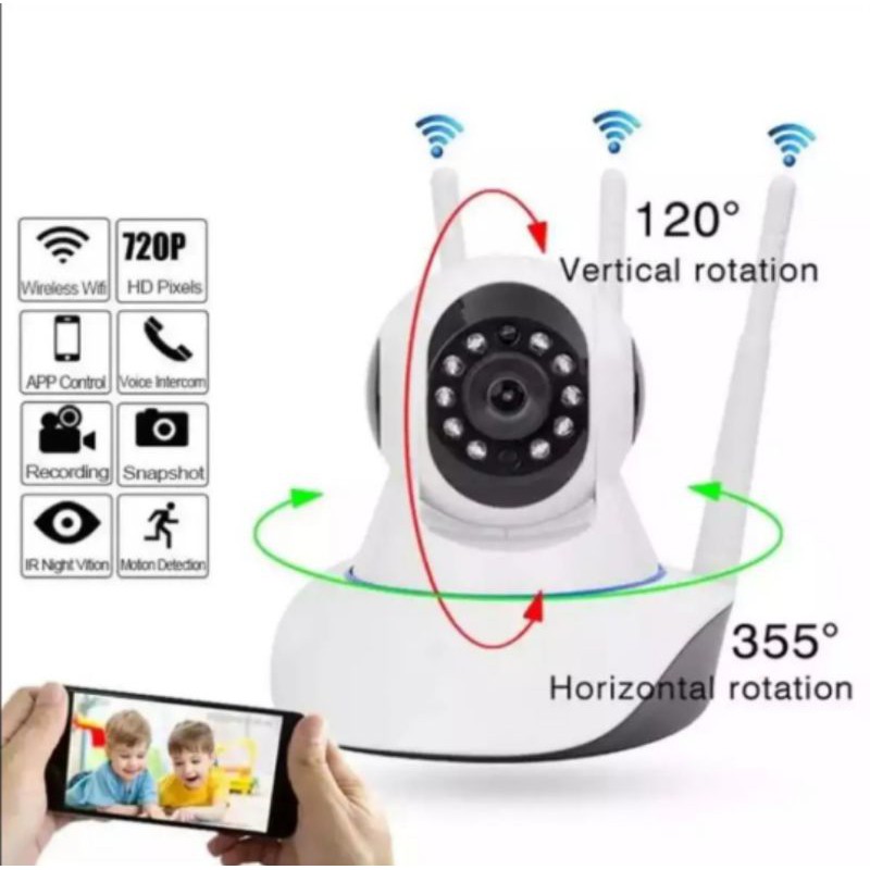 IPcam V380 1080p HD Kamera Pengintai CCTV Wireles Wifi 3 camera antena - Camera pemantau Bayi