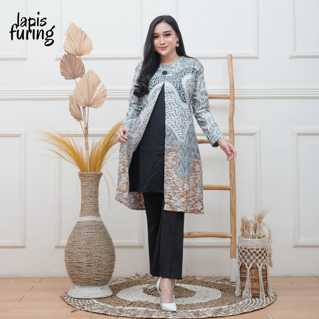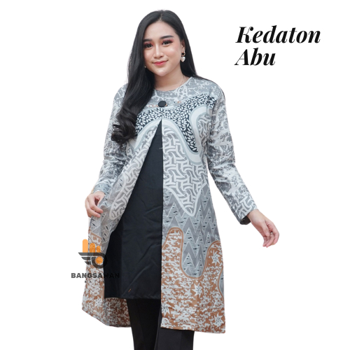 Bangsawan-Baju Batik Tunik Wanita Modern Kedaton Abu Jumbo[EXP098]