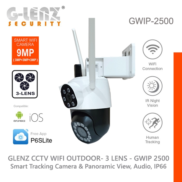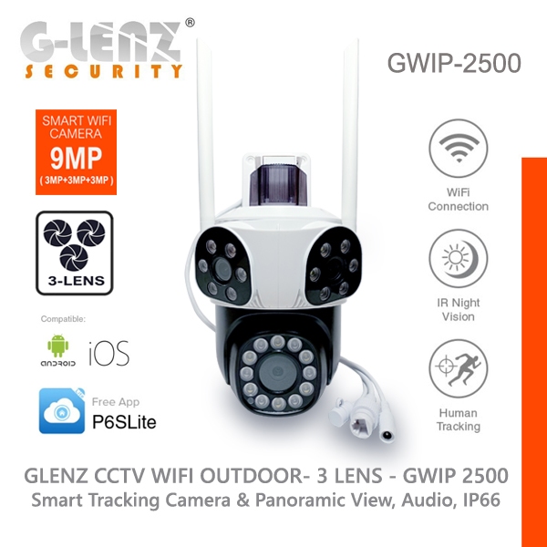 GLENZ SMART CCTV WIFI 3 LENSA (3MPx3) OUTDOOR CAMERA - GWIP 2500
