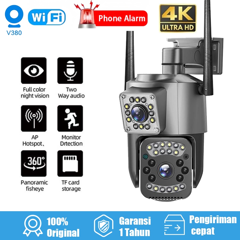V380 CCTV WiFi 1080P HD 8MP Dual Lens Outdoor IP66Waterproof IP Camera CCTV PTZ Kamera HP Jarak Jauh