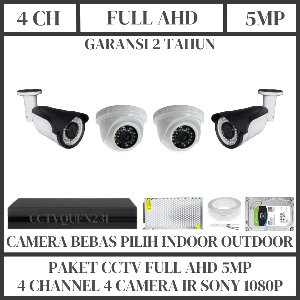 PAKET CCTV FULL AHD 4 CHANNEL 4 KAMERA 5 MP IR SONY 1080P CAMERA CCTV KOMPLIT TINGGAL PASANG
