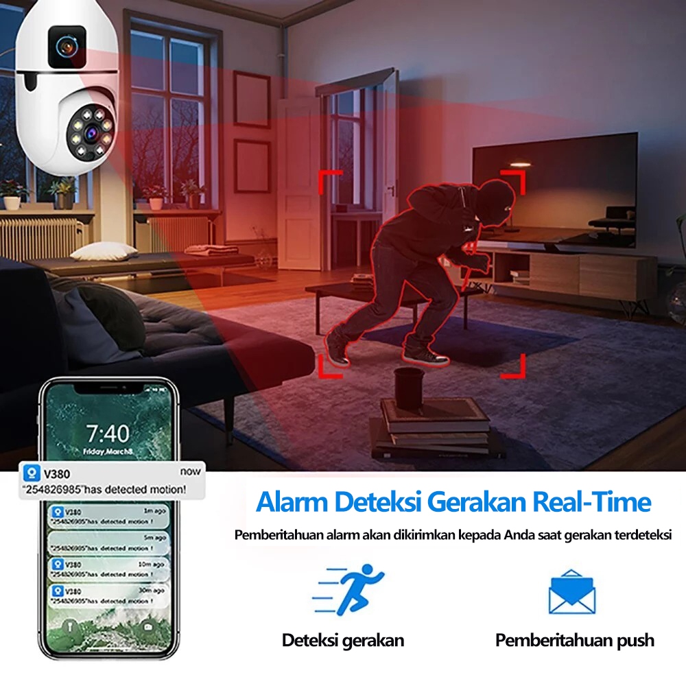 V380 IP Kamera 8MP PTZ CCTV Indoor Wifi Lamp 360° Degree Panoramic Surveillance HD ConvenientInstallation 64/128/25