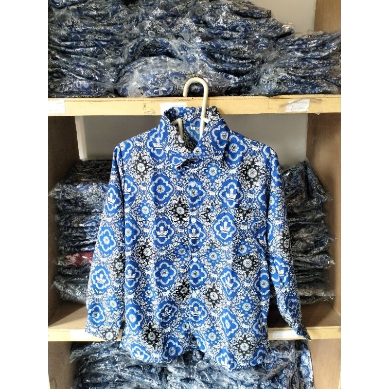 BATIK SMP NEGERI/BATIK SMP NASIONAL/BAJU SERAGAM BATIK KEMEJA SEKOLAH SMP MOTIF TINAS HARAPAN BIRU