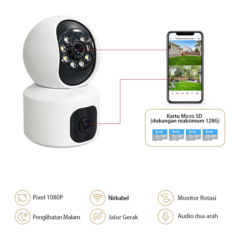 Franwell CCTV Camera 4MP HD Wi-Fi Multi Penglihatan Malam Lensa Ganda Kamera keamanan Pelayaran PTZ