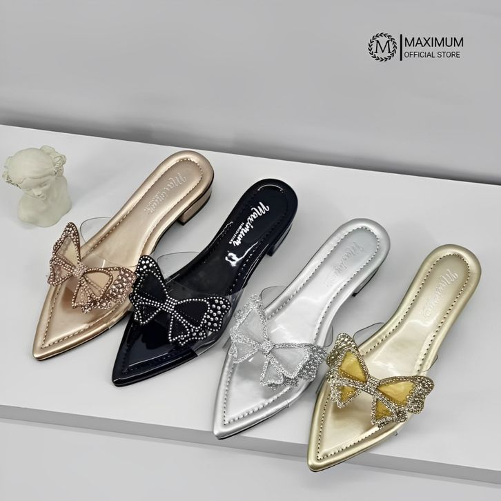 (TERLARIS)Sandal Ujung Lancip - Maximum Sandria - Sandal Flat Hak 3cm - Sandal Wanita Kekinian Premium