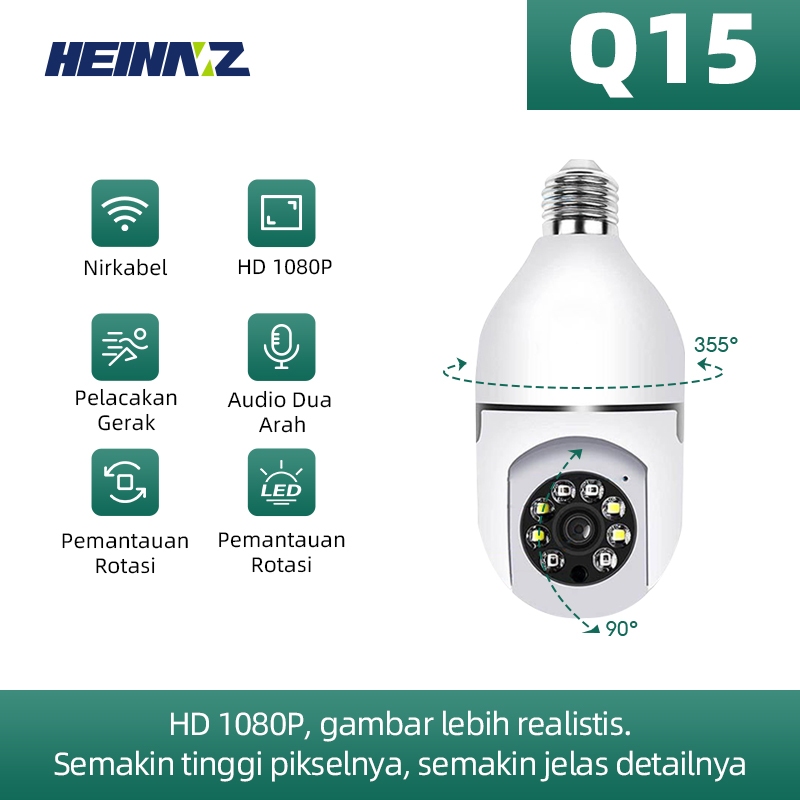 HEINVIZ Pro Q15 5G BULB PTZ Camera 1080p Kamera Keamanan IP Pelacakan Otomatis Penglihatan Malam CCTV Nirkabel Moti