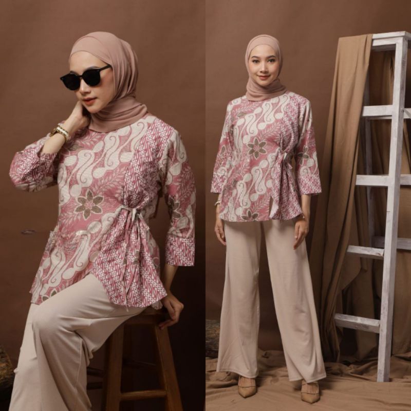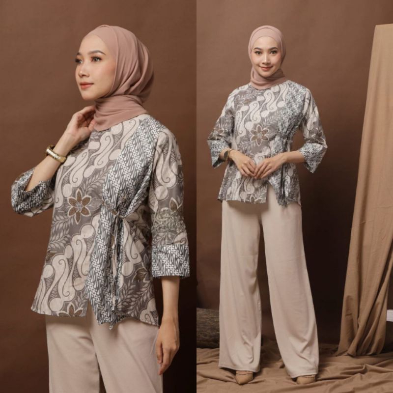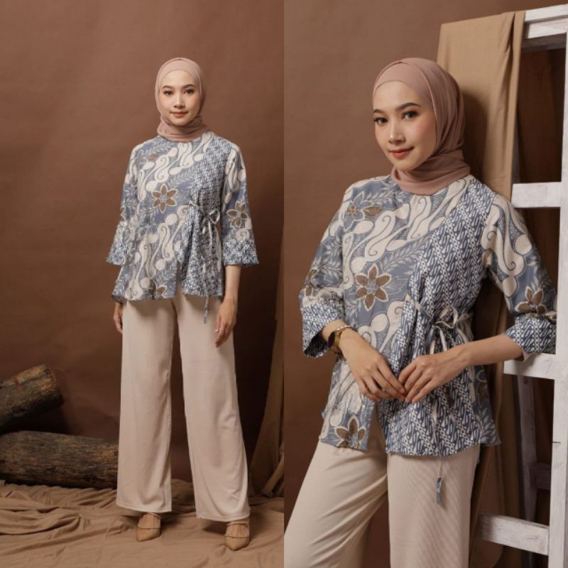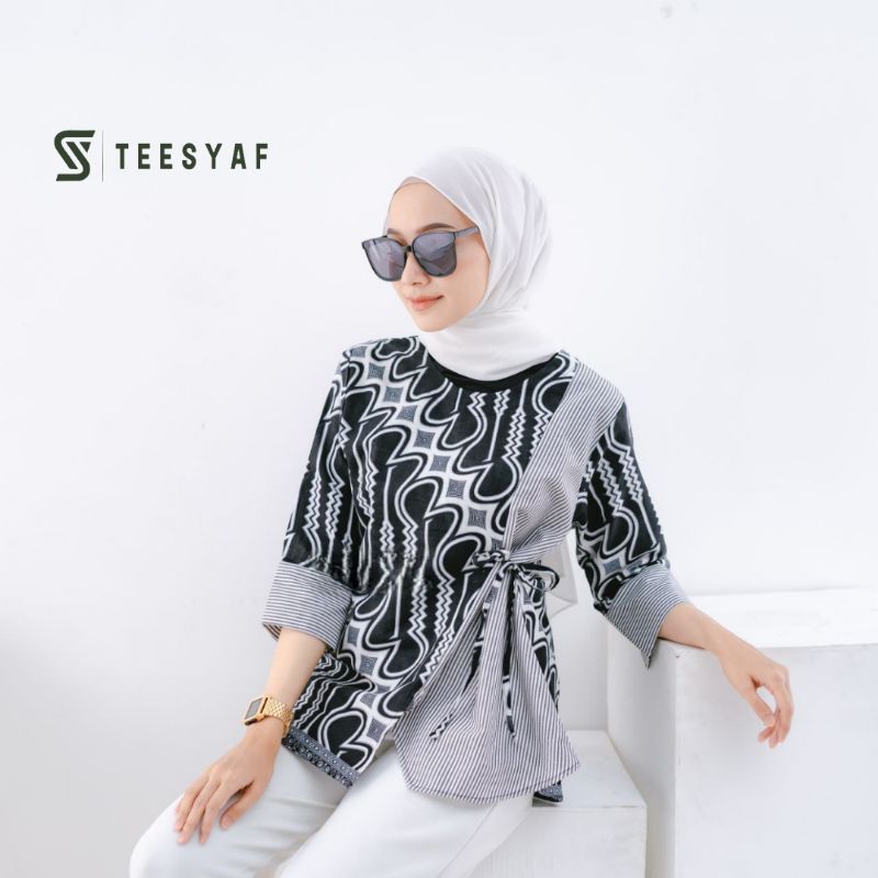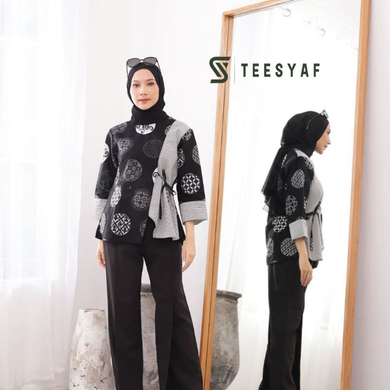 TEESYAF - Baju Atasan Blouse Batik Cewek Wanita Kerja Kuliah Formal Modern Motif TSK Maharini