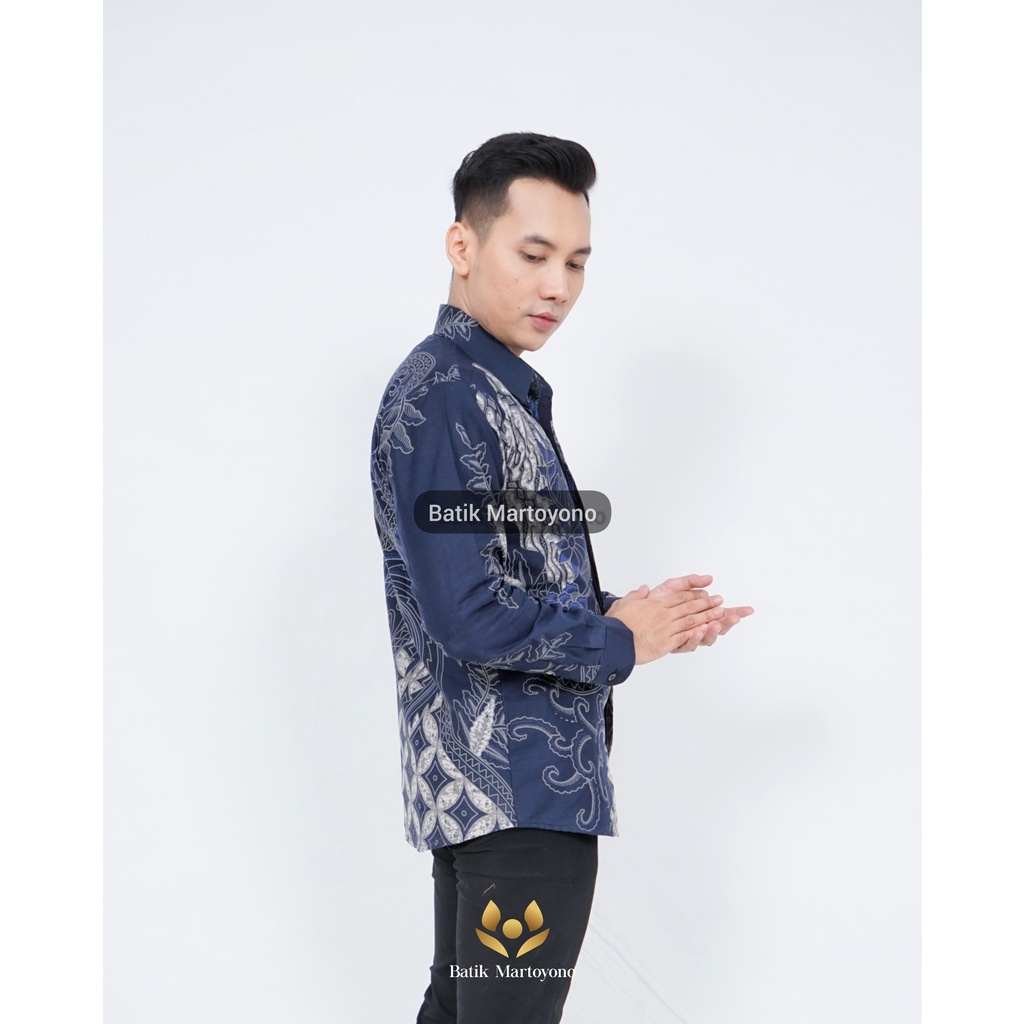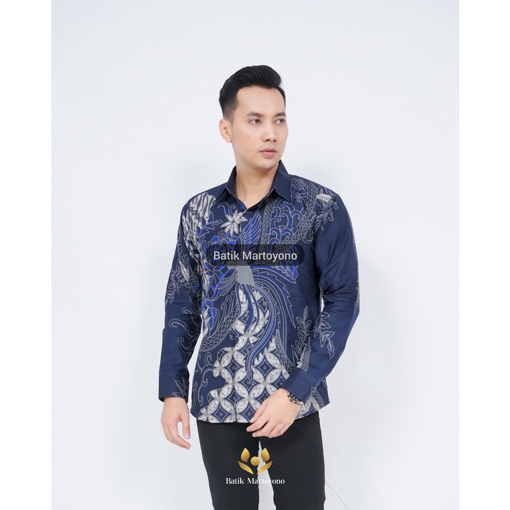 kemeja batik terbaru batik pria lengan panjang premium baju batik cowok warna biru kemeja batik slimfit