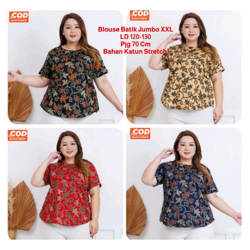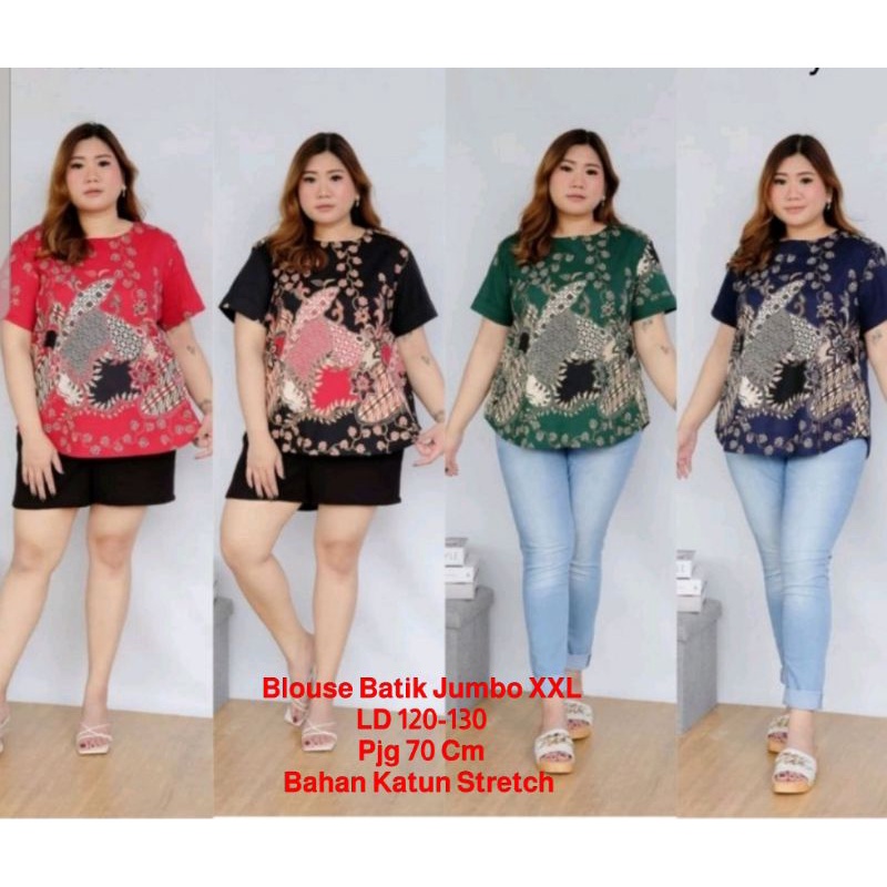 Baju Blouse Batik Jumbo XXL/Batik Atasan Wanita Katun Stretch Big Size