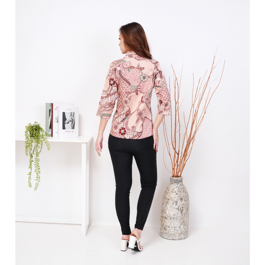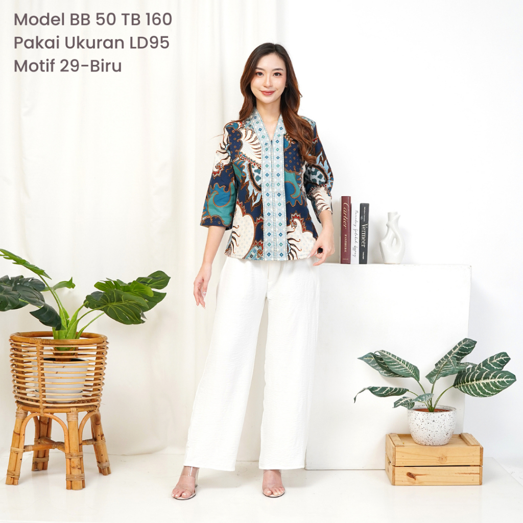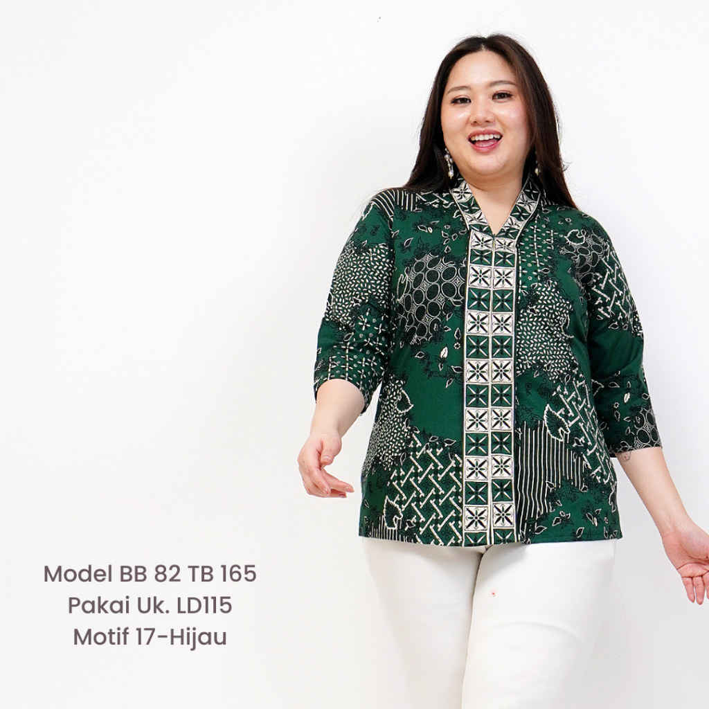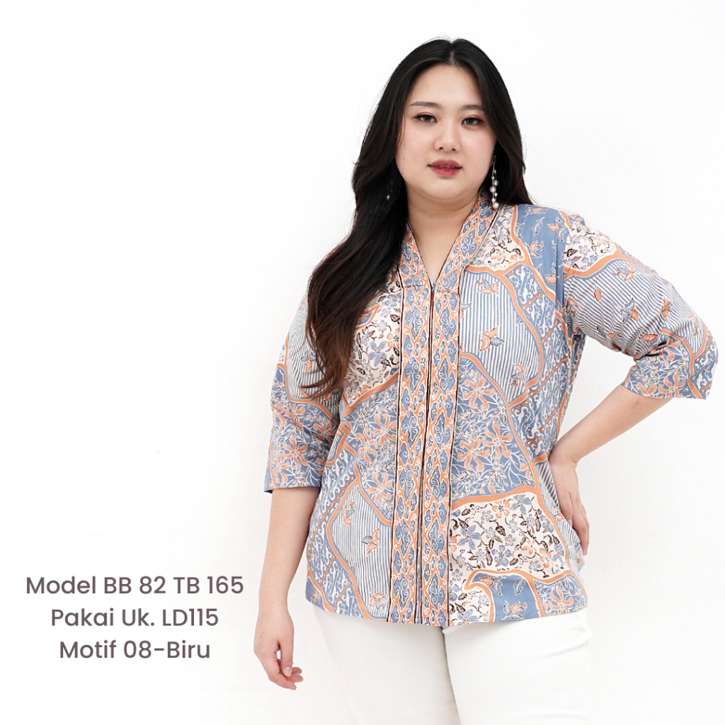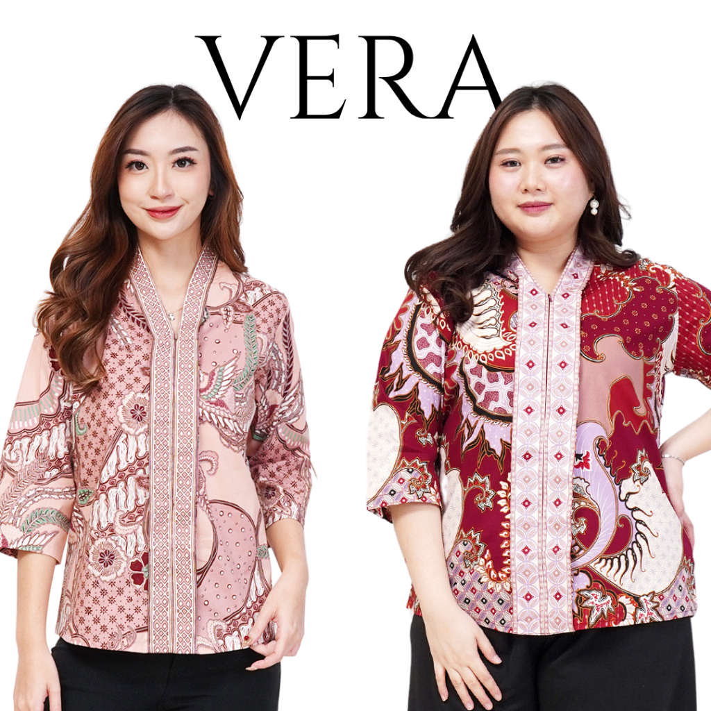 [VERA] LD95-130 Blouse Batik Wanita Lengan 3/4 Katun Stretch Premium Jumbo Bigsize Busui-Friendly Kantor
