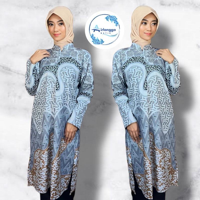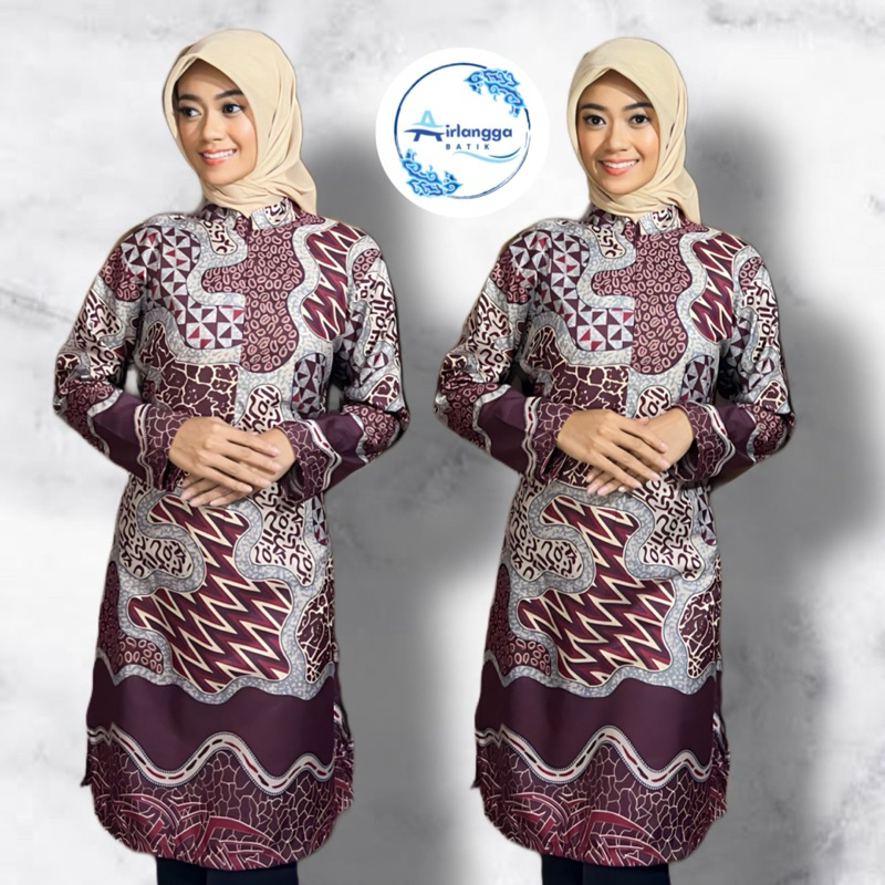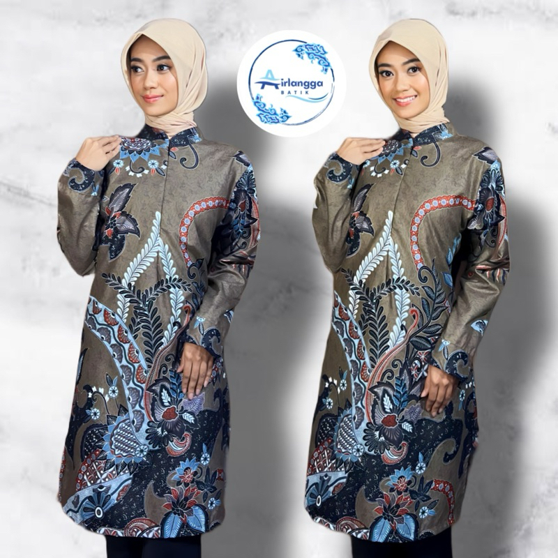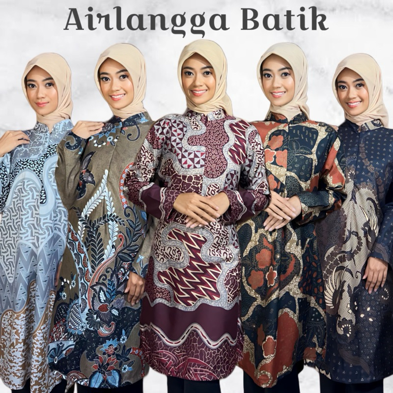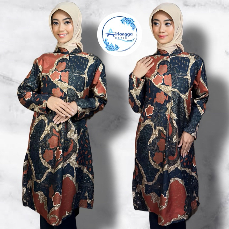 ATASAN TUNIK BATIK KERJA WANITA MODERN LEHER SHANGHAI SERAGAM KANTOR BUSUI FRIENDLY MOTIF KEKINIAN