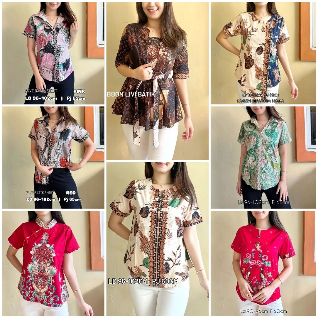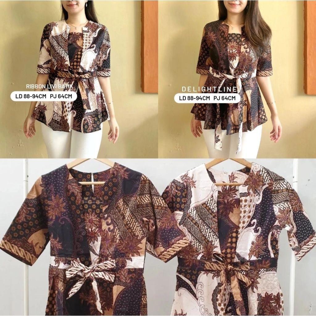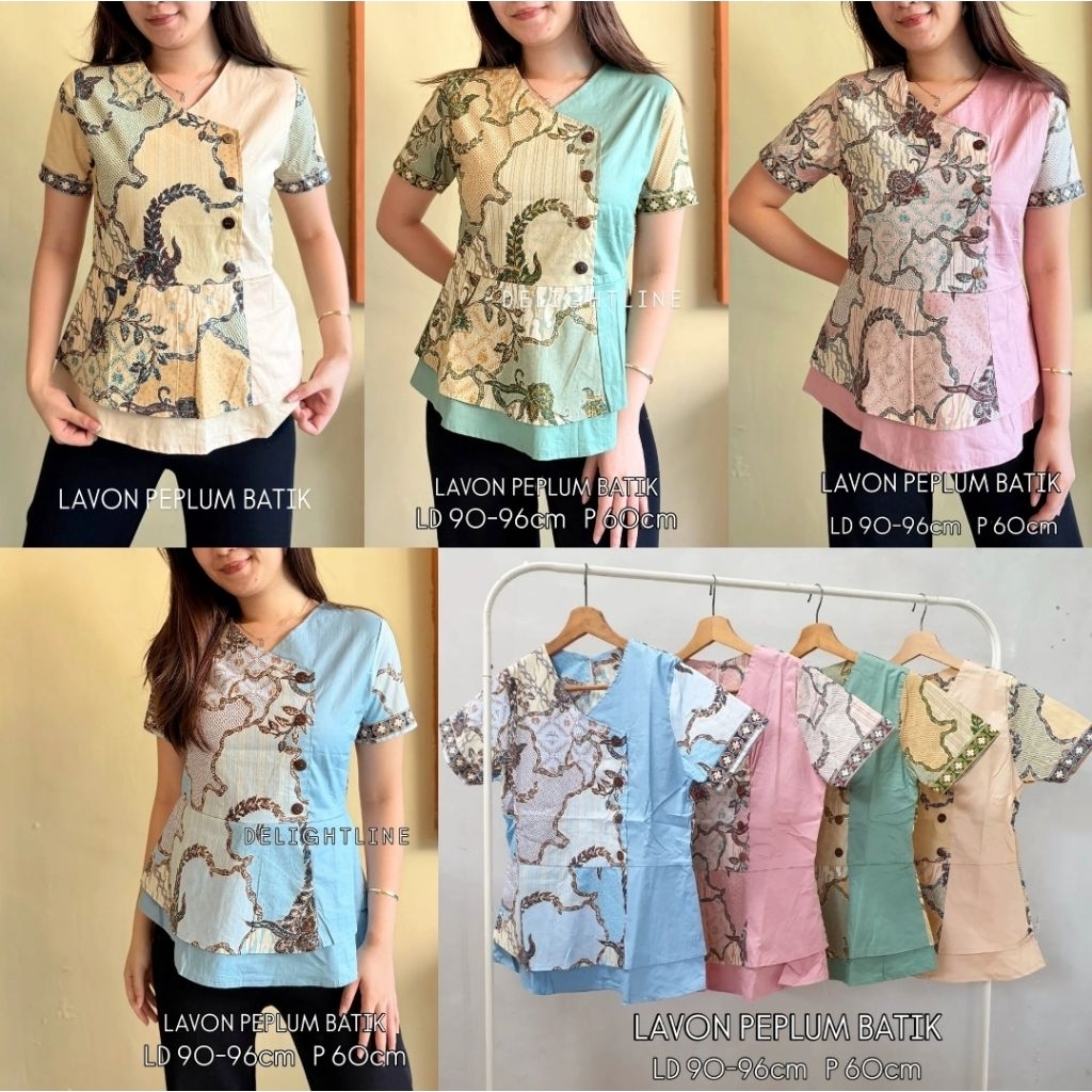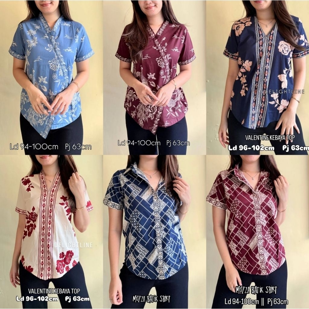 Delightline - Blouse Batik Kantor & Casual Katun Stretch - Atasan Basic Flower Etnik