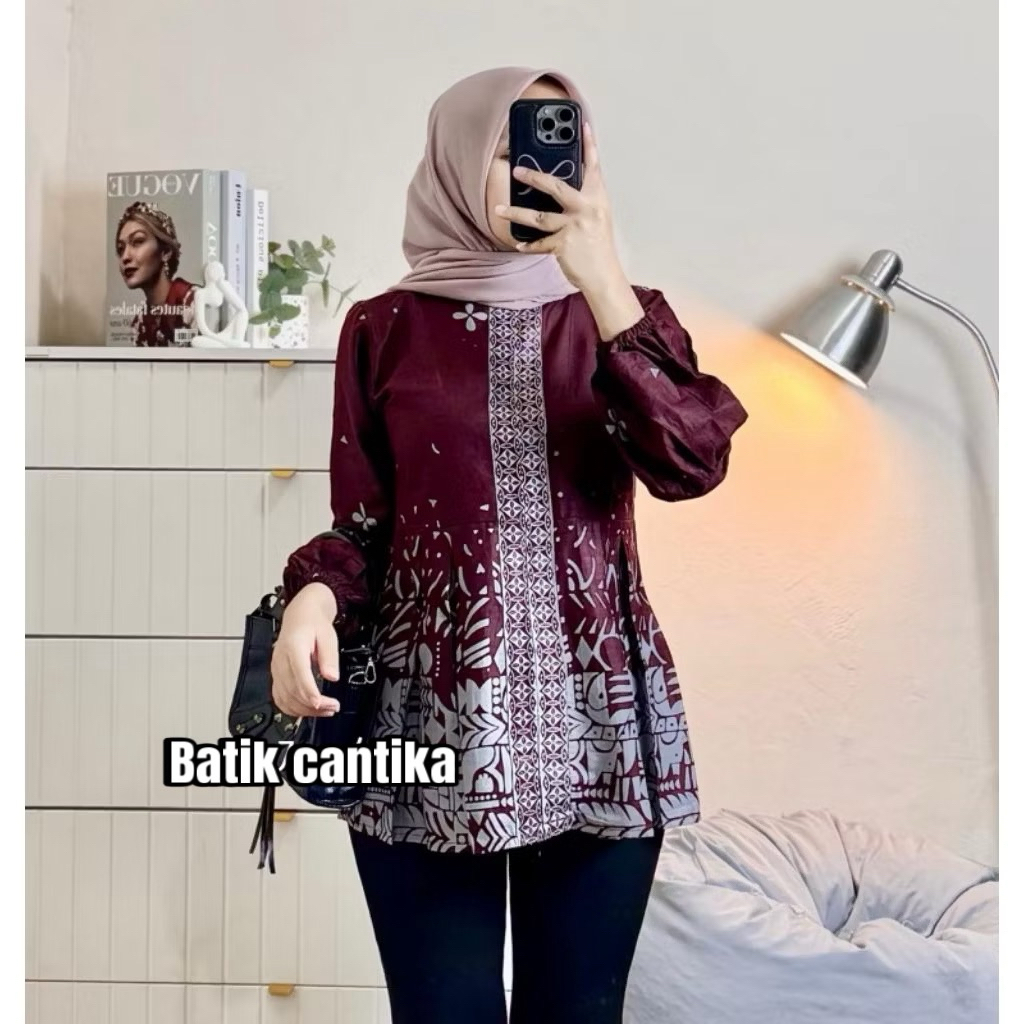 Batik Wanita ASJ SA HRB026 Kenongo Kemeja Tosca Pendek