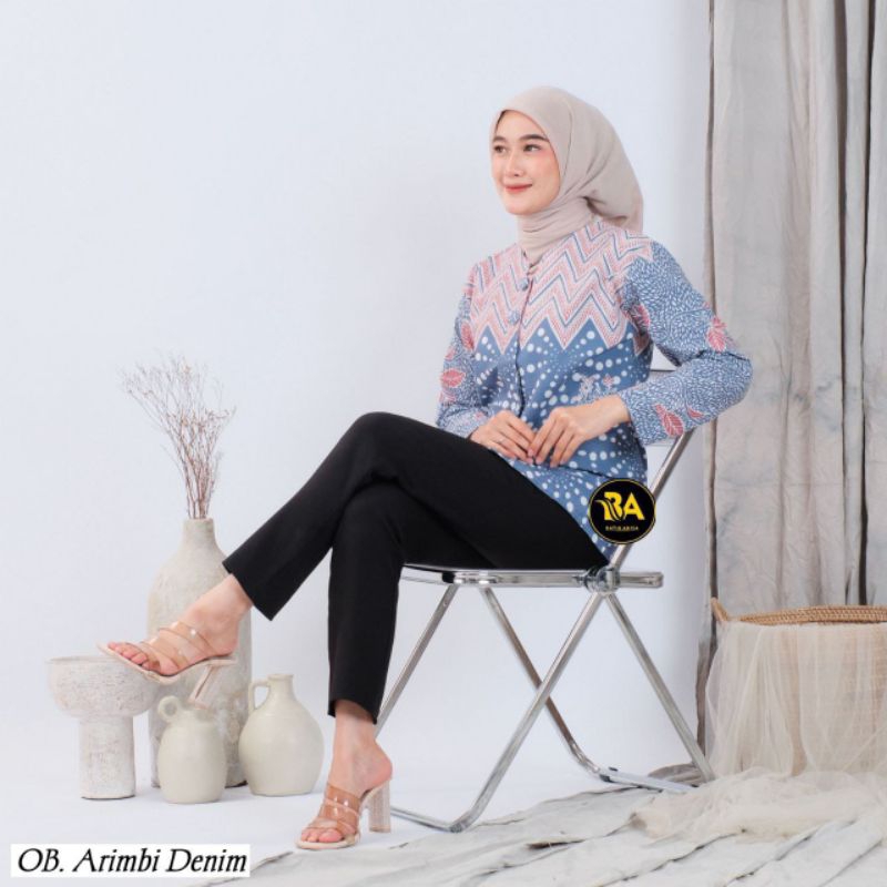 Batik Wanita Kerja Seragam Kantor Modern Busui Lengan Panjang