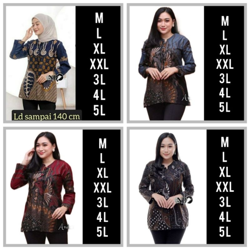 Atasan Batik Wanita Jumbo Ukuran XXL XXXL 4L 5L Lengan Panjang Terbaru