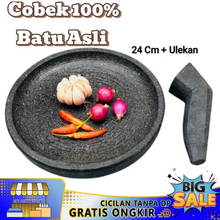 Promo Cobek UK 24Cm Batu Asli 100% + Ulekan