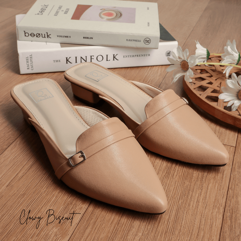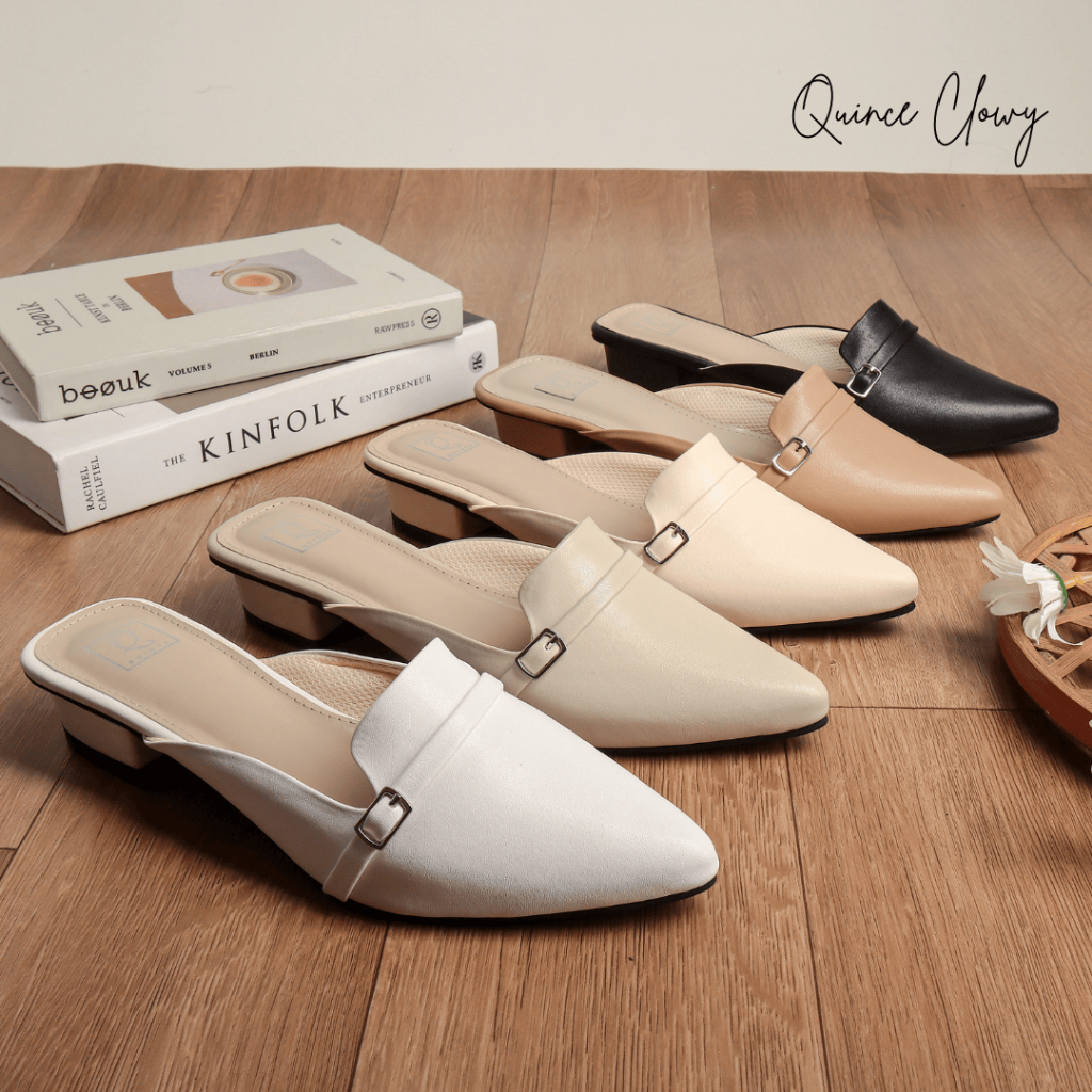 QUINCE Clowy Sandal Slop Wanita Mules Hak Tahu 3 Cm