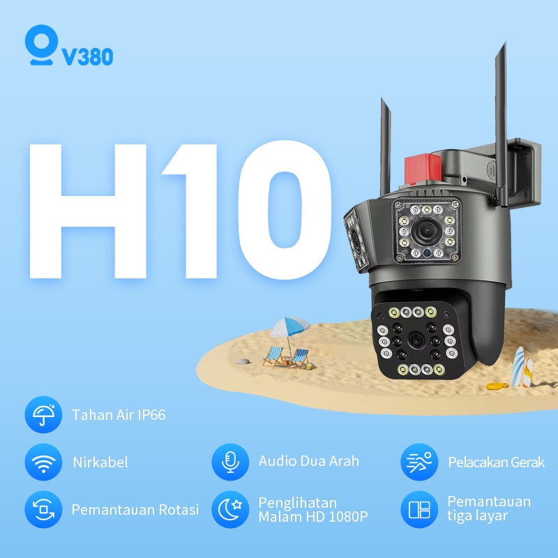 V380 H10 Tiga Lensa Outdoor Tanah Air CCTV Camera HD Wi-Fi Nirkabel/Berkabel Multi Penglihatan Malam Kamera keaman