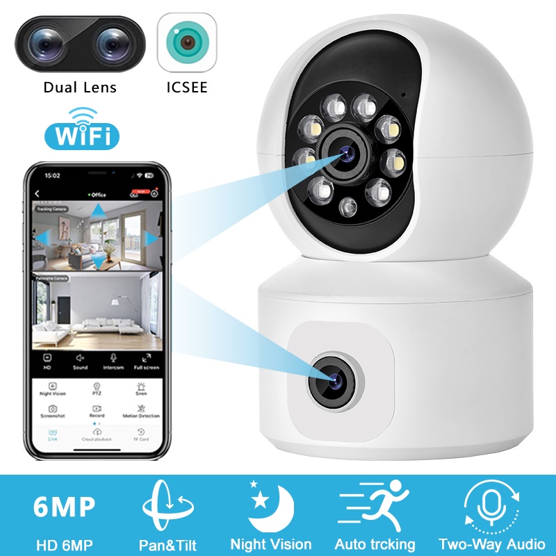 ★HOT★Smart Indoor IP Camera Wifi CCTV 8MP Dual Lens PTZ Waterproof HP Jarak Jauh